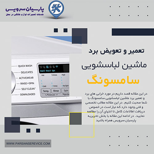 یکی از وسایلی که بین لوازم خانگی در هرخانه ای وجود آن لازم است ماشین لباسشویی می باشد. این دسته از لوازم خانگی اگر به هر دلیل دچار خرابی شود رفع آن نیازمند متخصصین و افراد فنی است. یکی از برندهای معروف در بین لباسشویی های بازار که می توان گفت به دلیل کیفیت بالای ساخت و قطعات و میزان مصرف انرژی مشتریان زیادی را به خود جذب کرده است سامسونگ می باشد. ماشین های لباسشویی سامسونگ دارای کیفیت بالای ساخت می باشند و این شرکت تمام تلاش خود را کرده است که تمام محصولات خود را با به کارگیری نهایت تکنولوژی روز بازار همسو کند و شاید به جرات بتوانیم بگوییم که در این موضوع از بازار جلوتر هم بوده است. یکی از این تکنولوژی هایی که در ماشین های لباسشویی سامسونگ شاهد آن هستیم هوشمندی آن ها و پیشرفت اتوماتیک عمل کردن آن ها می باشد. یکی از قطعاتی که در این خصوص وجود آن لازم است برد ماشین لباسشویی است که دارای ساختار الکترونیکی و هوشمندی می باشد. خرابی برد ماشین لباسشویی می تواند تاثیر بزرگی در عملکرد ماشین لباسشویی بگذارد. در این مقاله قصد داریم در مورد خرابی های برد و تعمیر برد ماشین لباسشویی سامسونگ با شما صحبت کنیم. در این مقاله مطالب تخصصی و فنی وجود دارد که نیاز است در خصوص دریافت اطالاعات کامل تا انتهای آن را مطالعه نمایید. در ادامه این مقاله با بخش تحریریه پارسیان سرویس همراه باشید.