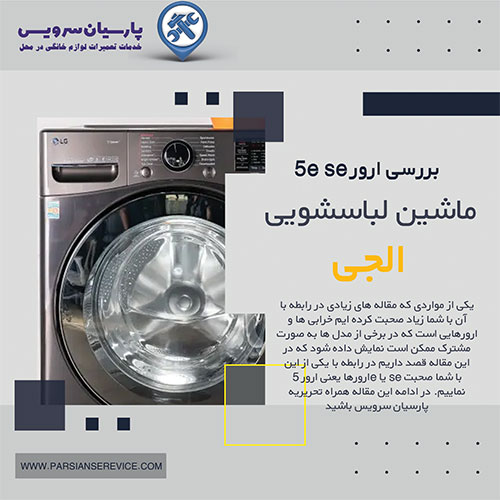 همانطور که می دانید یکی از وسایل پرکاربرد در هرخانه ای ماشین لباسشویی می باشد و این وسیله در خانه با برندهای متفاوتی تهیه و استفاده می شود. لازم است بدانید یکی از ماشین های لباسشویی که می توان جز بهترین برندها و مطرح ترین این وسیله قرار دهیم برند الجی می باشد. الجی در تولیدات لوازم خانگی دارای تجربه بینظیر و زیادی می باشد و همین امر باعث شده است که لوازم خانگی تولید شده توسط این برند جز پرطرفدارترین لوازم خانگی قرار بگیرد. یکی از تولیدات با کیفیت این برند ماشین های لباسشویی های تولیدی آن است که توانسته به دلیل کیفیت بالای ساخت و امکانات فراوانی که در تولیدات آن قرار می دهد جز پرفروش ترین ماشین های لباسشویی بازار باشد. یکی از ویژگی هایی که در ماشین های لباسشویی تولید جدید شاهد آن هستیم سیستم هوشمند بررسی ارور و نمایش ارور است. این قابلیت در ماشین های لباسشویی الجی به شکل جالبی قرار گرفته است. یکی از مواردی که مقاله های زیادی در رابطه با آن با شما زیاد صحبت کرده ایم خرابی ها و ارورهایی است که در برخی از مدل ها به صورت مشترک ممکن است نمایش داده شود که در این مقاله قصد داریم در رابطه با یکی از این ارورها یعنی ارور 5e یا se با شما صحبت نماییم. در ادامه این مقاله همراه تحریریه پارسیان سرویس باشید.