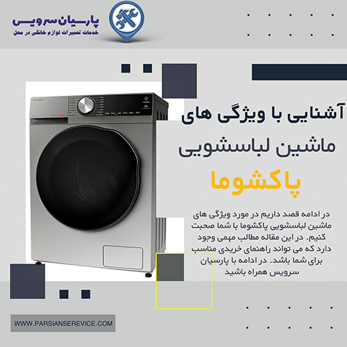 ماشین لباسشویی پاکشوما یکی از ماشین لباسشویی های ایرانی است. تولیدات با کیفیتی را به بازار عرضه کرده است.این برند به دلیل قیمت مناسب و کیفیت بالای ساخت توانسته .جایگاه ویژه ای را در بازار این عرصه برای خود فراهم کند. در بین رقبا جای بگیرد. تولیدات برند پاکشوما در مدل ها و حجم های مختلف به همراه طرح های متنوع توانسته نیاز تمام سلیقه ها را رفع نماید.این برند با بیش از نیم قرن تجربه در امر تولید می تواند انتخاب مناسبی برای خانه و خانواده ایرانی باشد. در ادامه قصد داریم در مورد ویژگی های ماشین لباسشویی پاکشوما با شما صحبت کنیم. در این مقاله مطالب مهمی وجود دارد که می تواند راهنمای خریدی مناسب برای شما باشد. در ادامه با پارسیان سرویس همراه باشید.