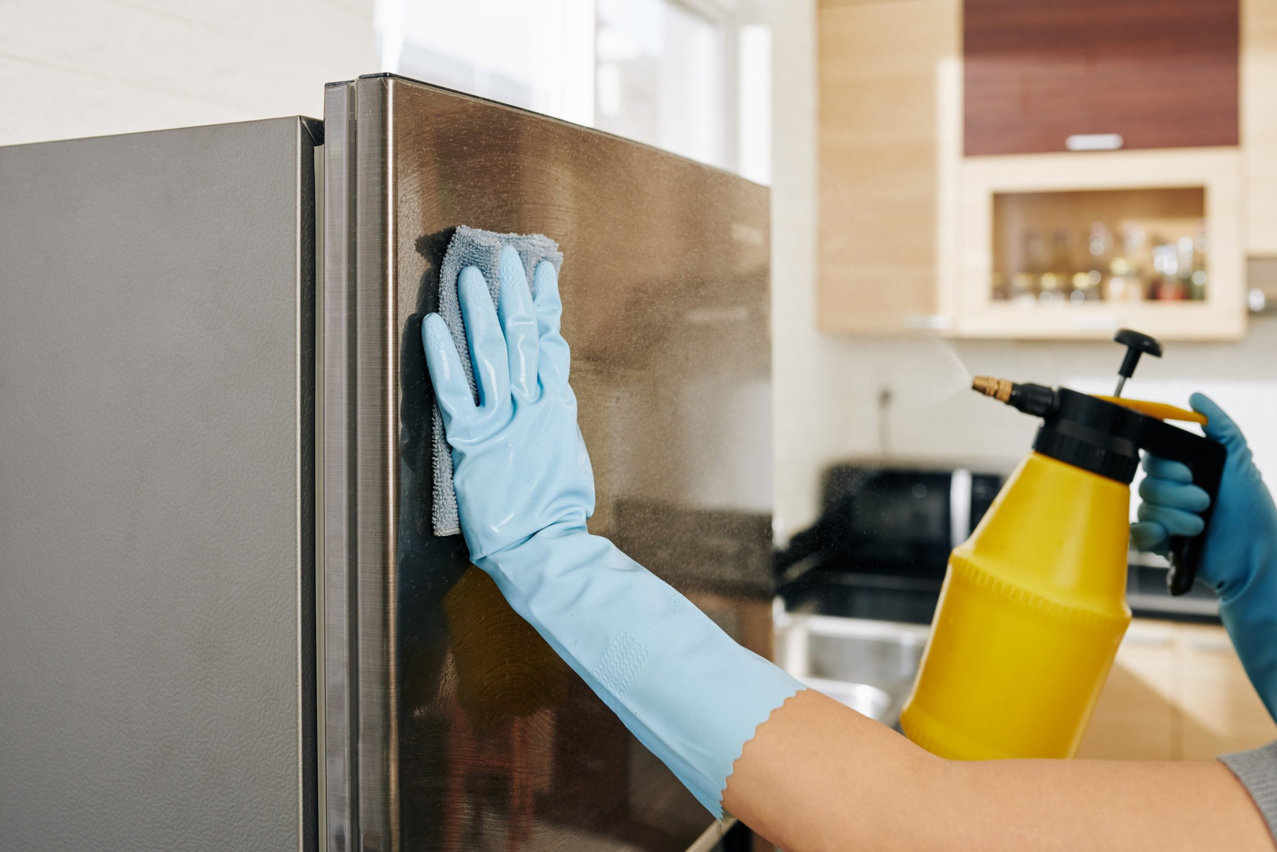 اگر بدنه یخچال شما از جنس استیل نبود، باید از دستمال و محلول