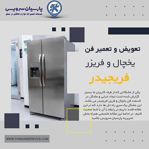 یکی از قطعات مهم در هر یخچال و فریزری فن های آن می باشد این فن ها در بیشتر مدل های برند فریجیدر دو عدد است. وظیفه این دو فن را به صورت جداگانه در ادامه مقاله بررسی می کنیم. در این قسمت از مقاله باید بگویی این فن ها در یخچال و فریزر به دلیل حساسیت و ظرافتی که در خود دارند ممکن است مشکلات اساسی برایشان ایجاد شود که باید هرچه سریعتر اقدام به رفع مشکل نمایید. دلیل تاکید ما برای رفع مشکلات در فن این است که در صورت دوام مشکل احتمال اینکه به بخش های دیگر از دستگاه صدمات جدی تری وارد شود خیلی بالاست و عدم رفع مشکل می تواند ریسک بالا و خطراتی را حتی برای کمپرسور دستگاه ایجاد نماید. لازم است بدانید پیشنهاد ما این است در صورتی که فن یخچال و فریزر شما خراب شده است به طور حتم با متخصصین ما در بخش نمایندگی یخچال فریزر فریجیدر در پارسیان سرویس در تماس باشید. شما می توانید از طریق شماره های زیر با تماس داشته باشید و خدمات خود را در صورت نیاز رزرو نمایید.
