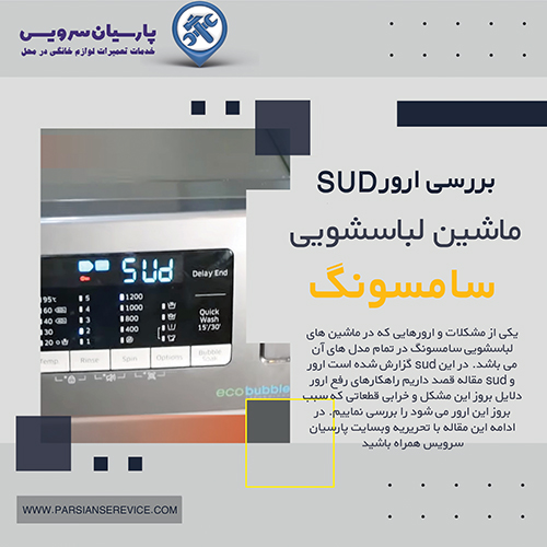 یکی از وسایلی که در درسته لوازم خانگی کاربردی می باشد و وجود آن در هرخانه ای لازم است ماشین لباسشویی است. این دستگاه را برندهای متفاوت در مدل های مختلفی تولید می نمایند که یکی از برندهای قدیمی تولید کننده آن سامسونگ است. این برند به دلیل اینکه تولیدات با کیفیتی را در این دسته تولید می نماید توانسته مشتریان زیادی را به خود جذب نماید. یکی از دلایلی که این برند را در میان برندهای دیگر مطرح و خاص کرده است کیفیت بالا و استفاده از تکنولوژی های روز در دستگاه های تولیدی سامسونگ است. یکی از تکنولوژی هایی که در ماشین های لباسشویی سامسونگ استفاده می شود و بسیار هم کاربردی است سیستم هوشمند نمایش خرابی در قالب کد ارور است. ولی در نظر باید داشته باشید برند و کیفیت بالا دلیلی بر این موضوع نیست که دستگاه خرابی کمتری داشته باشد و همه ماشین های لباسشویی بسته به شرایط استفاده دستخوش مشکلاتی می شوند و برخی از این مشکلات به صورت متداول و در بین تمام تولیدات و مدل های آن یکسان و یک شکل است. یکی از مشکلات و ارورهایی که در ماشین های لباسشویی سامسونگ در تمام مدل های آن گزارش شده است ارور sud می باشد. در این مقاله قصد داریم راهکارهای رفع ارور sud و دلایل بروز این مشکل و خرابی قطعاتی که سبب بروز این ارور می شود را بررسی نماییم. در ادامه این مقاله با تحریریه وبسایت پارسیان سرویس همراه باشید.