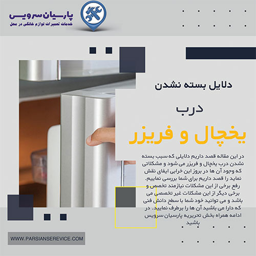 یخچال و فریزر یکی از لوازم خانگی می باشد که در هرخانه ای استفاده زیادی از آن می شود و لازم است به درستی کار نماید. یخچال ها و فریزرها همه دارای قطعاتی هستند که باید به صورت درست در کنار هم و به درستی کار کنند و لازم است برای اینکه این قطعات دچار آسیب نشوند بعد از گذشت زمان سرویس و مراقبت شوند. یکی از این قطعات و بخش ها درب یخچال و فریزر است که بعد از چندقطعه مهم دیگر نقش مهمترین بخش را در یخچال ایفا می نماید. درب یخچال و فریزر خود به تنهایی دارای بخش های مختلفی است و این بخش ها قطعات ریز و درشتی دارند که باید به آن ها توجه داشت. یکی از این مشکلاتی که در درب یخچال و فریزر ممکن است به وجود آید و باید از دلایلی که سبب بروز این مشکل می شود اطلاع داشت بسته نشدن درب دستگاه است که این مشکل برای تمام مدل های یخچال و فریزر ممکن است به وجود آید. در این مقاله قصد داریم دلایلی که سبب بسته نشدن درب یخچال و فریزر می شود و مشکلاتی که وجود آن ها در بروز این خرابی ایفای نقش نماید را قصد داریم برای شما بررسی نماییم. رفع برخی از این مشکلات نیازمند تخصص و برخی دیگر از این مشکلات غیر تخصصی می باشد و می توانید خود شما با سطح دانش فنی که دارا می باشید آن ها را برطرف نمایید. در ادامه همراه بخش تحریریه پارسیان سرویس باشید.